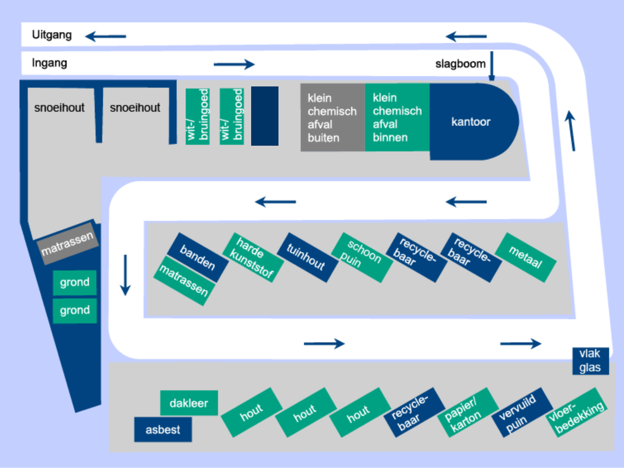 Bedrijven kunnen niet gebruikmaken van de milieustraat. Het is dan ook niet toegestaan om met een bedrijfswagen de milieustraat te bezoeken. Heeft u bedrijfsafval? Laat dan uw afval afvoeren door een afvalverwerker.