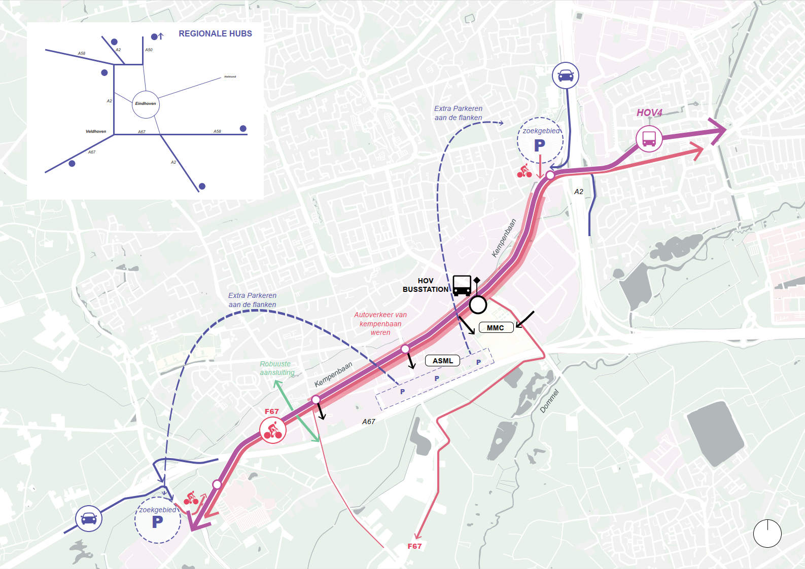 In het omgevingsplan staan verschillende maatregelen die het reizen tussen Eindhoven Centraal Station en De Run in Veldhoven makkelijker en sneller moeten maken (HOV4)