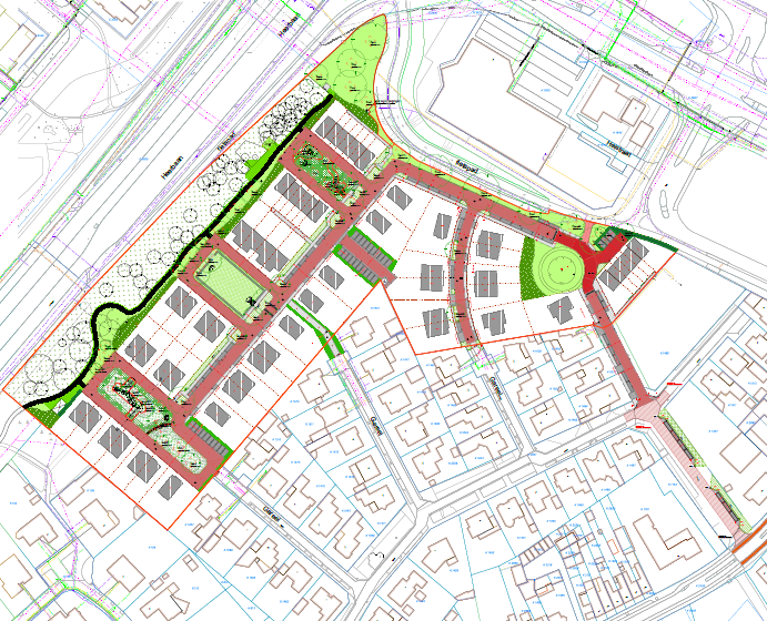 - Er zijn veel bomen weggehaald omdat hier woningen worden gebouwd. Op een nog te bepalen moment, wanneer het plantseizoen is wordt het groen gepland. Het uitgangspunt is dat bomen in een zo groot mogelijke plantvak wordt aangebracht, Zo heeft de boom ook ondergronds voldoende ruimte om zich te ontwikkelen.